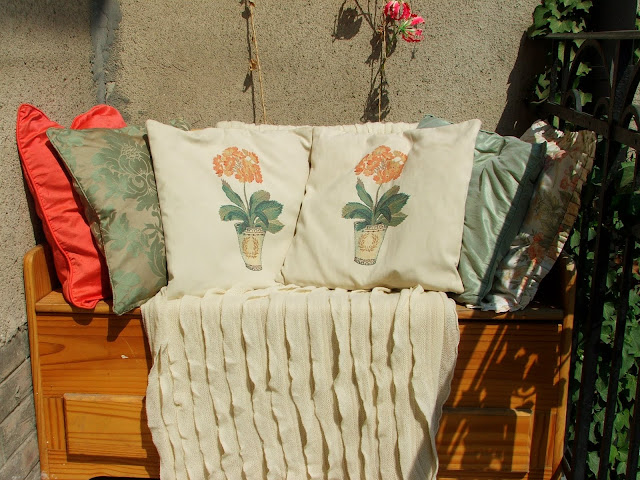 Készítettem néhány díszpárnás beállítást a loggián, amíg be nem krepált a fotómasina... Aztán jött a viharos erejű szél, majd a sok hétvégi elfoglaltság, és nem haladok a fényképezéssel és a párnák bemutatásával. De igyekszem összeszedni magam és folytatni.