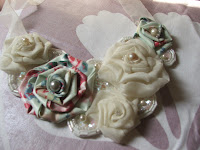 Cinnamon-nál láttam egy gyönyörű nyakéket, ami annyira megragadta a fantáziámat, hogy az egyik délután nem bírtam tovább, és nekiestem a megvalósításának. Itthoni anyagokból dolgoztam, és annyira látványosan haladós munka, hogy azonnal nekiestem egy másiknak is, a maradékok felhasználásával.Szerintem lesz még folytatás, nagyon szeretnék egy szürke-sárga-kék, és egy hófehér variációt is. Hajgumira, hajráfra vagy kitűzőre gondoltam, de azt hiszem a piros nyári táskámra is kerülni fog egy hasonló dísz, hogy feldobja...